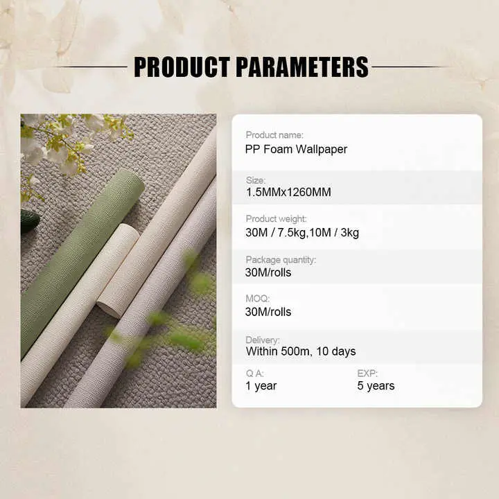 · مواد با دوام و مقاوم در برابر آب: کاغذ دیواری PP ما از مواد پلی پروپیلن با کیفیت بالا ساخته شده است ، و اطمینان می دهد که از رطوبت ضد آب ، ضد آب و مقاوم در برابر قالب و گرما باقی مانده و آن را برای استفاده در محیط های مختلف از جمله خانه ، بازدم و فضاهای اداری مناسب می کند.